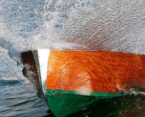 La carena è classica a V planante e dotata di doppio fondo con riserva di galleggiamento.