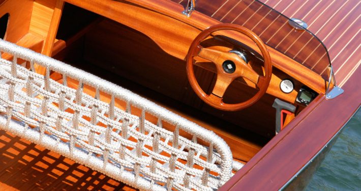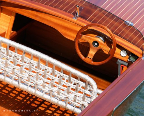In questa versione i sedili, realizzati con un intrecciato di canapa e fibre naturali, sono ribaltabili per trasformarsi in un comodo prendisole. Ed inoltre dettagli costruttivi che incuriosiscono e lo rendono inconfondibile, come le luci di via nascoste nei fregi, le bitte d’acciaio abbattibili ed il design essenziale ed elegante del basso parabrezza.