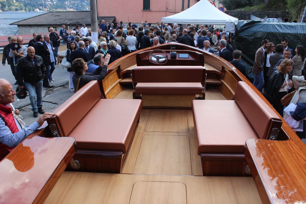 Alla presenza di oltre 150 presenti, tra istituzioni, clienti ed amici, il drappo rosso che ha rivelato le linee, la lucentezza, l’eleganza del primo E-Commuter del Lago di Como è stato sfilato dalla famiglia Riva al completo, con Daniele, titolare oggi del Cantiere, figlio di Ernesto, scomparso proprio dieci anni fa, mamma Mariuccia, figli e nipoti. Con loro anche l’importante e fondamentale presenza dei collaboratori a questo progetto: dagli operai e i fornitori del Cantiere, instancabili dopo le quasi 2000 ore di lavorazione tra legno e batterie, all’ing. e docente di ship design Carlo Bertorello, al progettista arch. Germán Mani Frers, talento mondiale della nautica che ha incantato con la descrizione della sua idea di fusione dell’ecosostenibilità del legno con la silenziosità dell’elettrico.